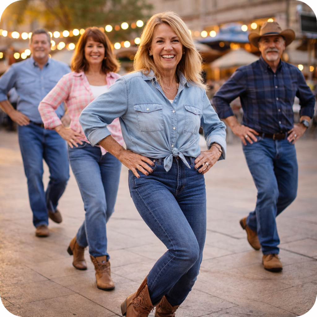Coreografías grupales divertidas y accesibles que mejoran la memoria, el ritmo y la agilidad.