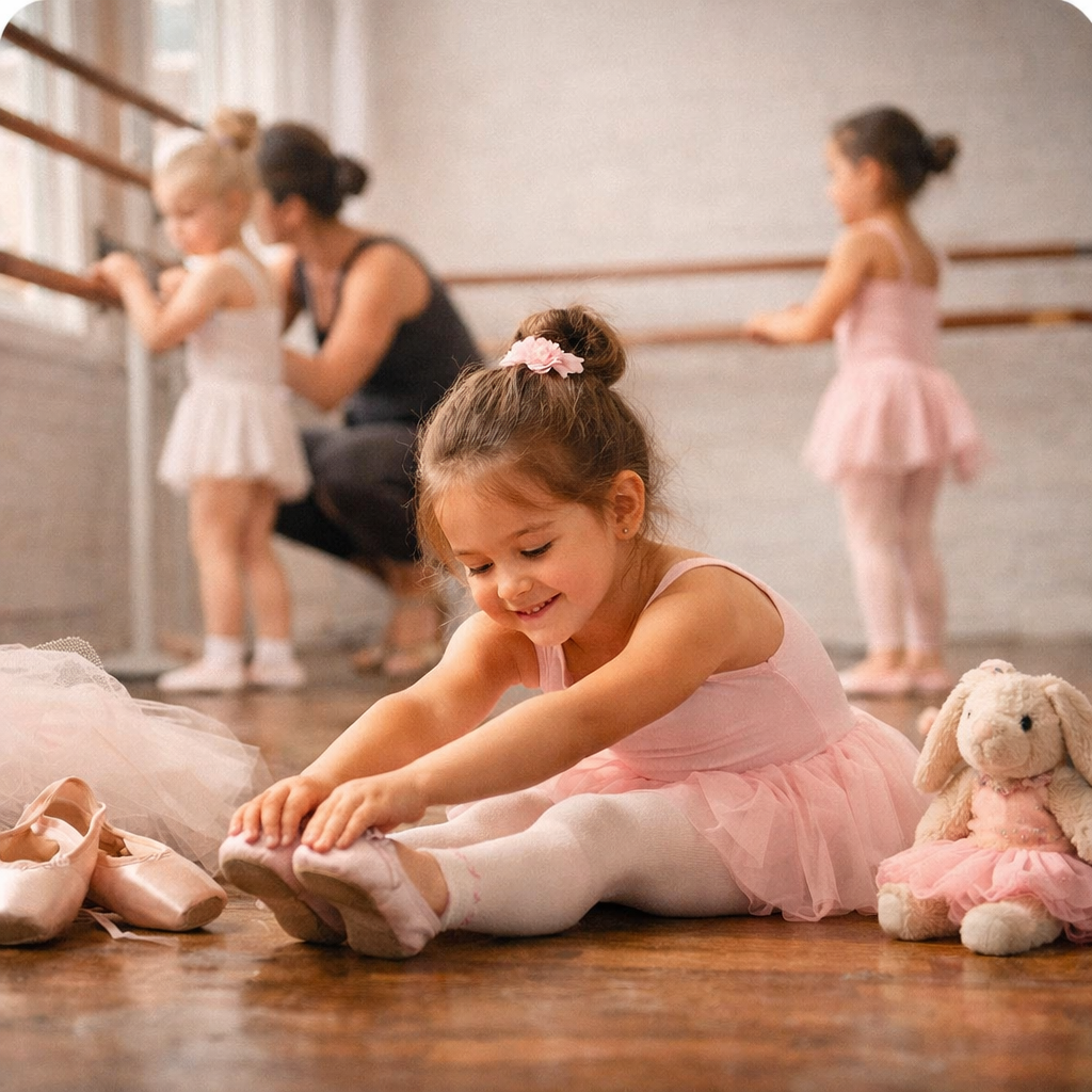 Primer contacto con la danza para desarrollar coordinación, ritmo, postura y expresión corporal desde la base.